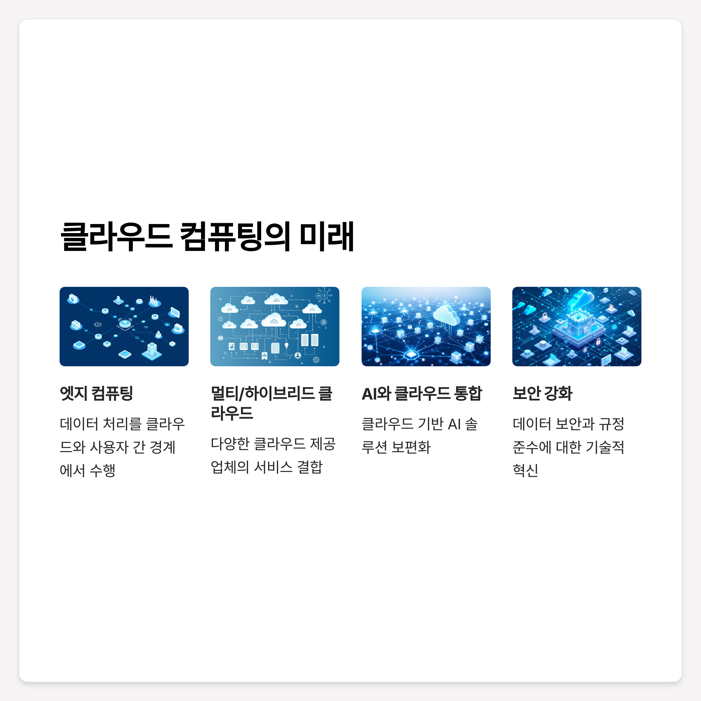 • 멀티 클라우드와 하이브리드 클라우드: 다양한 클라우드 제공업체의 서비스를 결합하여 유연성과 효율성을 증대.