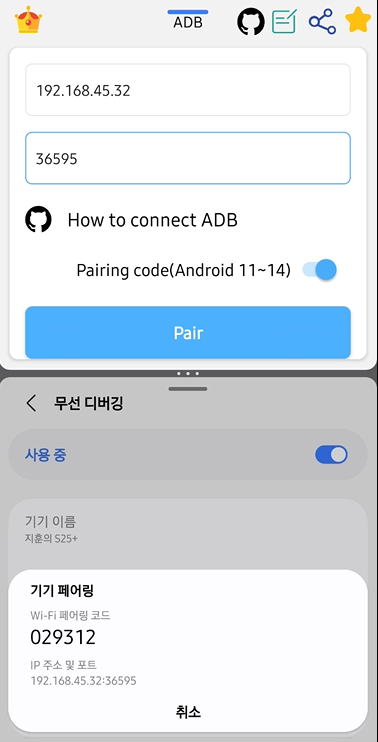 - ADB 입력 오류: 입력하는 IP/포트/코드 중 하나라도 틀리면 연결 불가
