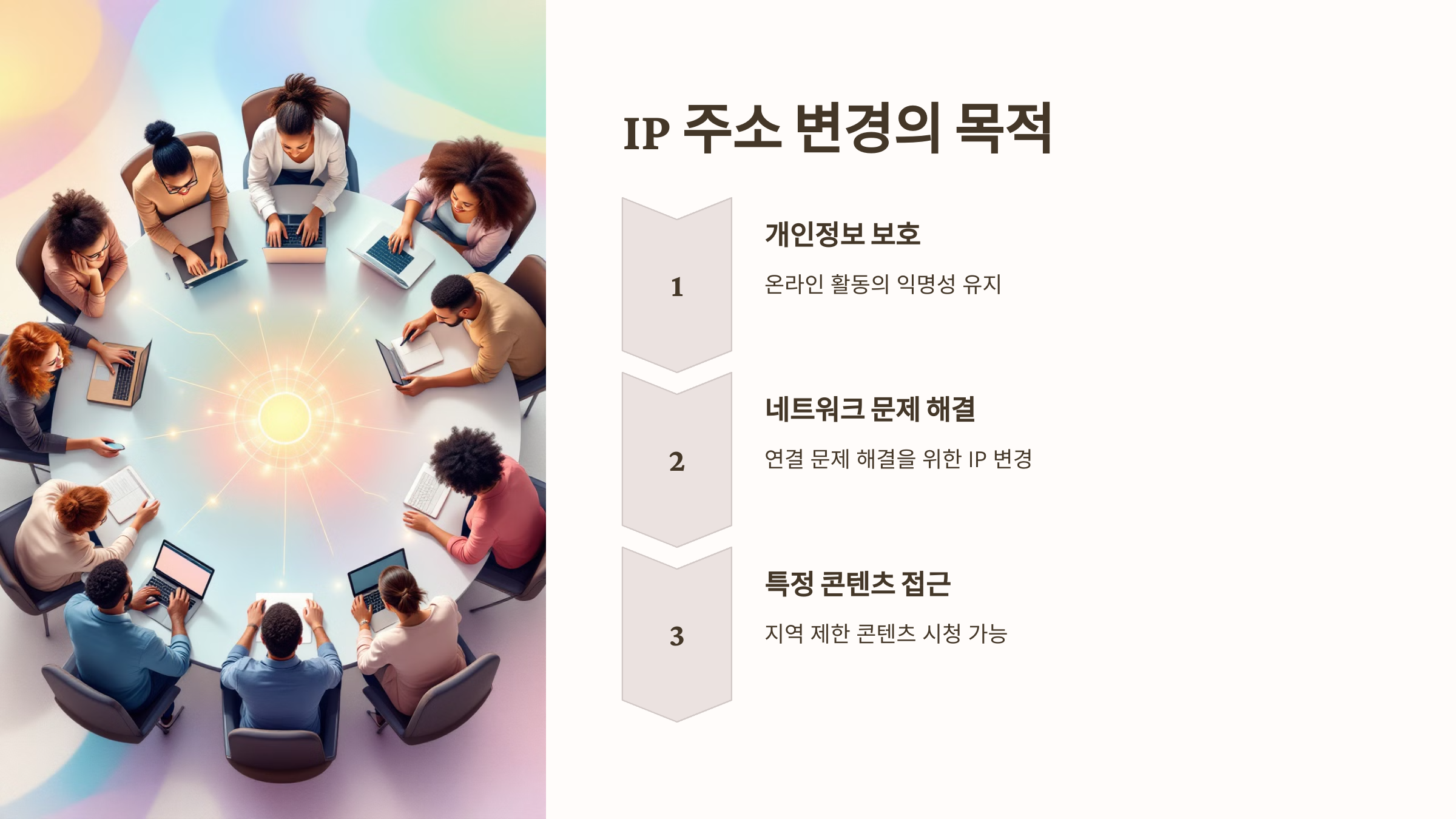 아이피주소를 변경하는 다양한 방법은 개인정보 보호, 네트워크 문제 해결, 특정 콘텐츠 접근 등 다양한 목적으로 사용됩니다. VPN 서비스는 보안과 속도 면에서 추천할 만하고, 프록시 서버는 특정 웹사이트 접속 시 유용합니다. 라우터 재설정, ISP 요청, TOR 네트워크 등 옵션을 상황에 맞게 선택해보세요!