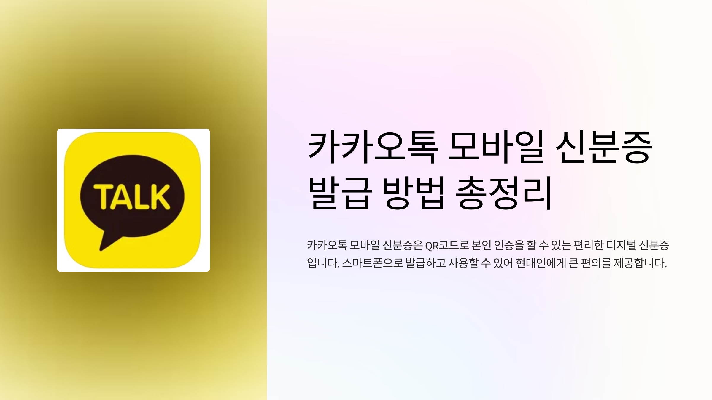 카카오톡 모바일 신분증은 실물 신분증을 대신할 수 있는 편리한 디지털 신분증으로, 각종 성인 인증이나 무인매장에서 빠르게 본인 인증을 수행할 수 있습니다. 이를 통해 바쁜 일상 속에서도 스마트하게 본인 인증을 관리해보세요.