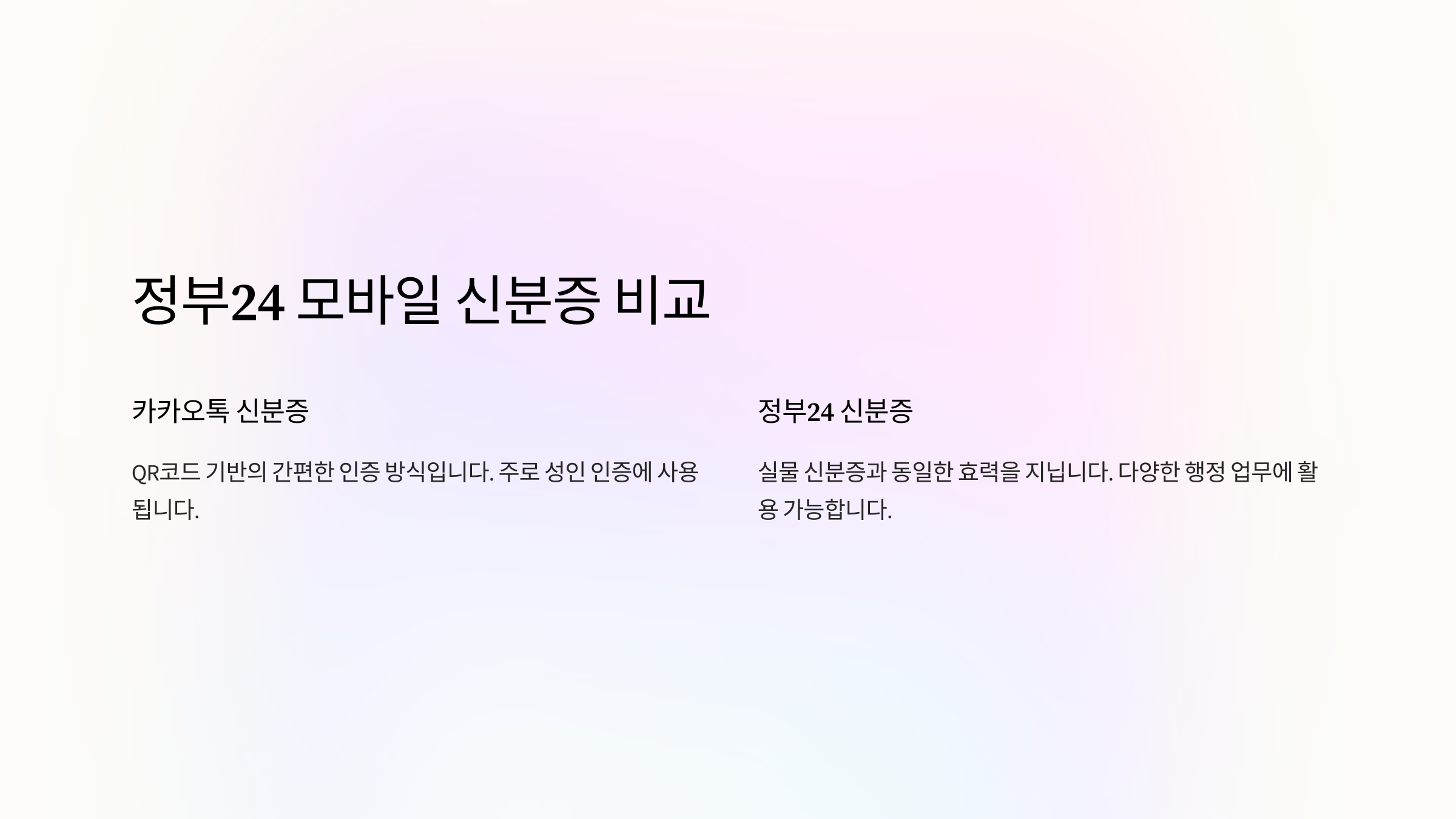 - 정부24와 비교하여 선택할 수 있는 신분증 옵션