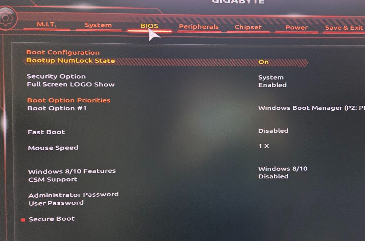 보안부팅 설정 시 부팅이 안 되는 경우 (MBR → GPT 변환)